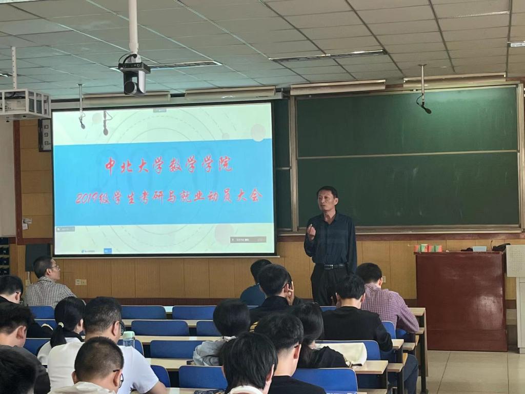 在09203H举办了2023届毕业生考研与就业动员大会,学院党委书记薛亚奎、院长孙桂全、院党委副书记孙俊伟、青年教师代表及2023届全体学生参加了大会。