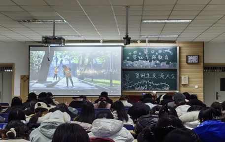 接下来,为使广大同学深入了解国家助学贷款有关政策,帮助困难学生顺利完成学业,以集体观看宣传视频的形式,将资助教育融入其中,加强了同学们的感恩意识,并对国家助学政策和具体办理流程进行说明。