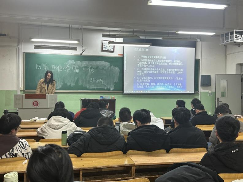 组织全院各班级开展了以“防范网络电信诈骗,筑牢校园安全防线”为主题的宣讲活动。学院成立由各班学生代表组成的反诈宣传队伍,此次宣讲就由他们担任主讲,活动旨在通过宣传教育,帮助学生识别诈骗手段,增强自我保护意识,营造安全、和谐的校园环境。