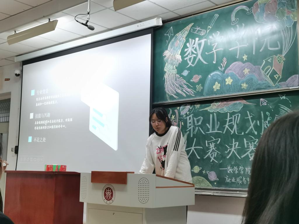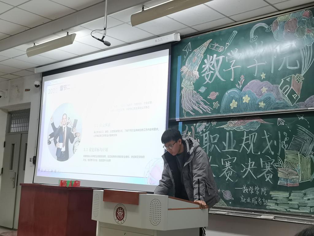 此次活动分为初赛--筛选作品,决赛--演讲展示。初赛于11月23日从提交的参赛作品中选出优秀职业规划书,并通知他们做好决赛准备;决赛于11月30日参赛者通过制作的PPT展示,介绍职业规划理念,然后评委打分,统计员统计得分。