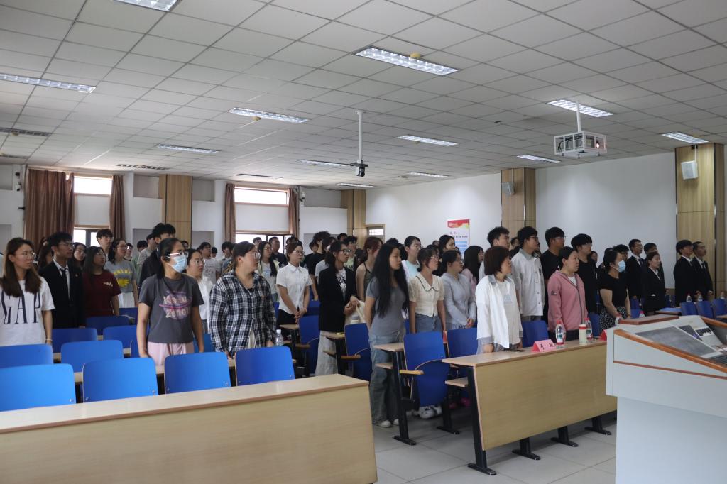 表彰大会在庄严的国歌声中拉开帷幕,全体师生肃立齐唱,表达对祖国的崇高敬意,坚定理想信念,砥砺青春使命。