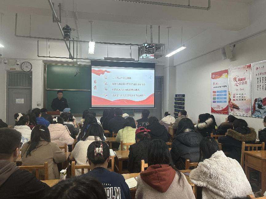 活动伊始,马克思主义学院党委副书记李庆乐通过二十届三中全会概要、新时代新征程中国共产党的使命任务、中国式现代化面临的现实挑战、以新质生产力发展推进中国式现代化四个方面带我们深入学习了党的二十届三中全会精神。李庆乐书记强调,发展新质生产力是推动高质量发展的内在要求和重要着力点。近年来,我国在载人航天、量子信息、核电技术、大飞机制造等领域取得了一系列重大成果,进入了创新型国家行列,具备了加快发展新质生产力的基础条件。新能源汽车、锂电池、光伏产品等重点领域加快发展,在数字经济等新兴领域形成了一定领先优势。新一代信息技术产业已形成珠三角、长三角、环渤海和中西部四大产业集聚区,以工业机器人和智能工程机械为代表的高端装备产业已处于国际领先地位。