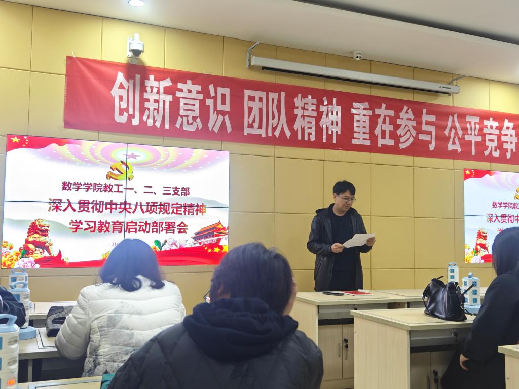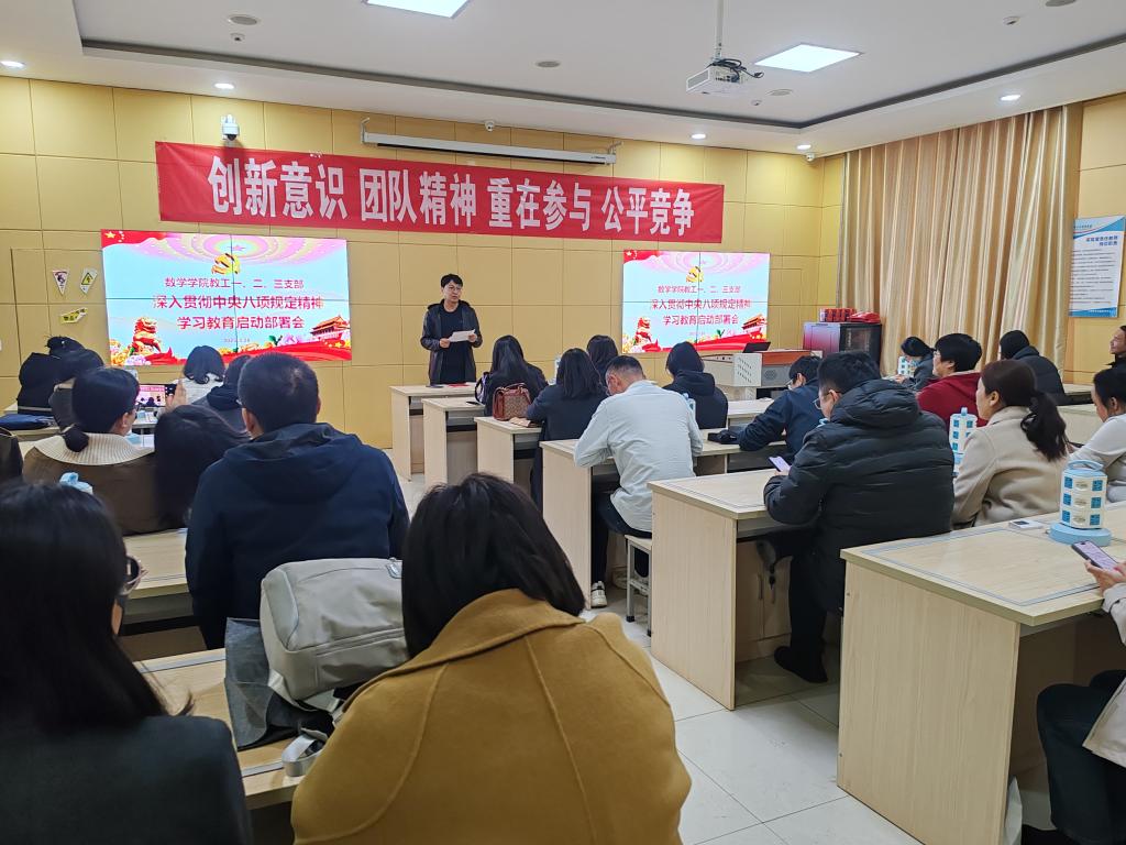 教工第一、二、三党支部在九号楼一层创新实验室联合召开了“深入贯彻中央八项规定精神学习教育”启动部署会。会议由教工第三支部书记张峰同志主持,全体党员教师参加了会议。