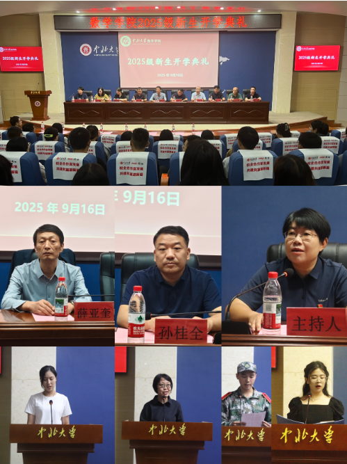 在校生代表叶向阳同学分享了自己在校学习生活感受,她鼓励新生们不仅要勤学善思,打好专业基础,更要积极参与科技竞赛,丰富学术视野,全面提升综合素质;研究生新生代表刘天宇和本科生新生代表刘展志分别上台发言,他们表达了对即将开始的中北新生活的无限憧憬与立志成才的坚定信心,表示将牢记“致知于行”的校训,不负韶华,努力拼搏,深耕数学沃土,全面发展,让大学生活充满最大值。
